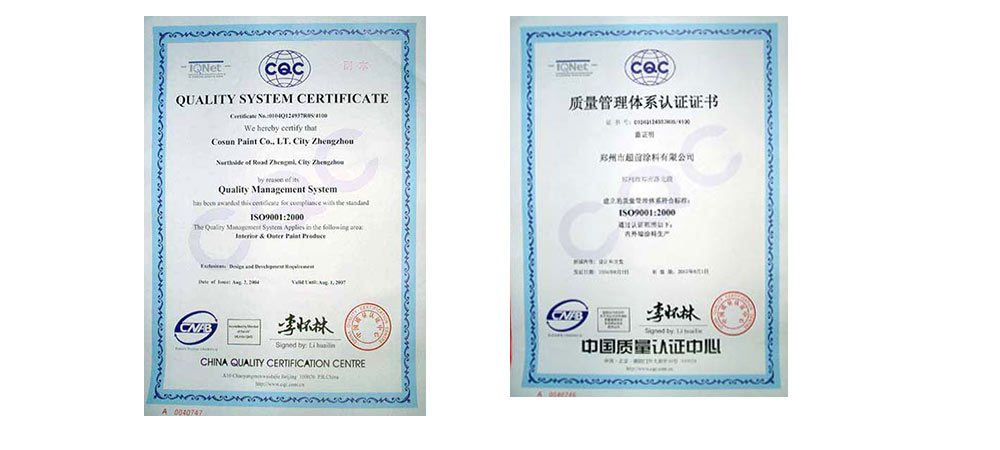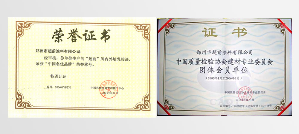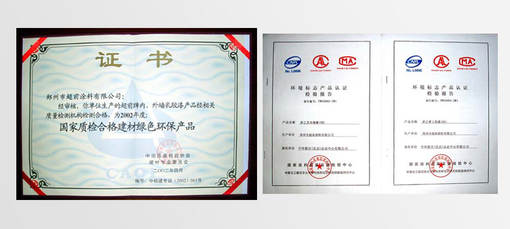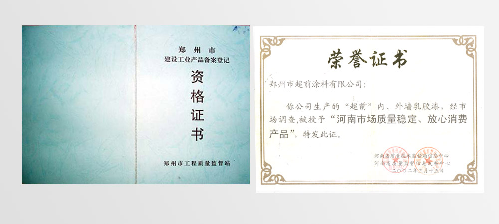 • 2002年評(píng)為“國(guó)家質(zhì)檢合格建材綠色環(huán)保產(chǎn)品”、 “河南市場(chǎng)質(zhì)量穩(wěn)定、放心消費(fèi)產(chǎn)品”