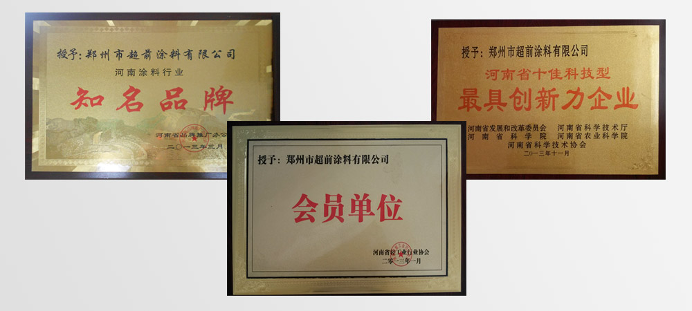 • 2013年榮獲河南省十佳科技型最具創(chuàng)新力企業(yè)、“河南涂料行業(yè)知名品牌”,并加入“河南省輕工業(yè)行業(yè)協(xié)會(huì)”